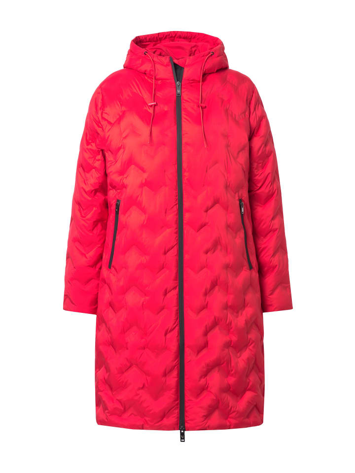 Стеганое пальто А-силуэта с модной лазерной стежкой. Теплая утепленная подкладка. Капюшон на шнурке, водонепроницаемая двухсторонняя молния с отделкой HYPRAR, два кармана на молнии. Длинные рукава. Полностью на подкладке. Изготовлено из переработанных материалов.