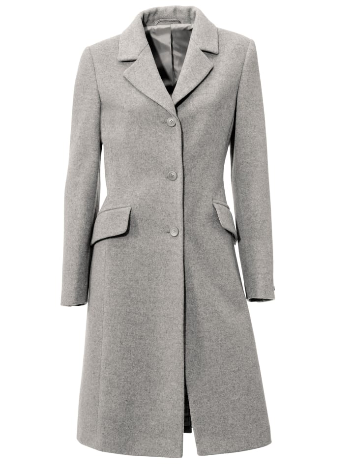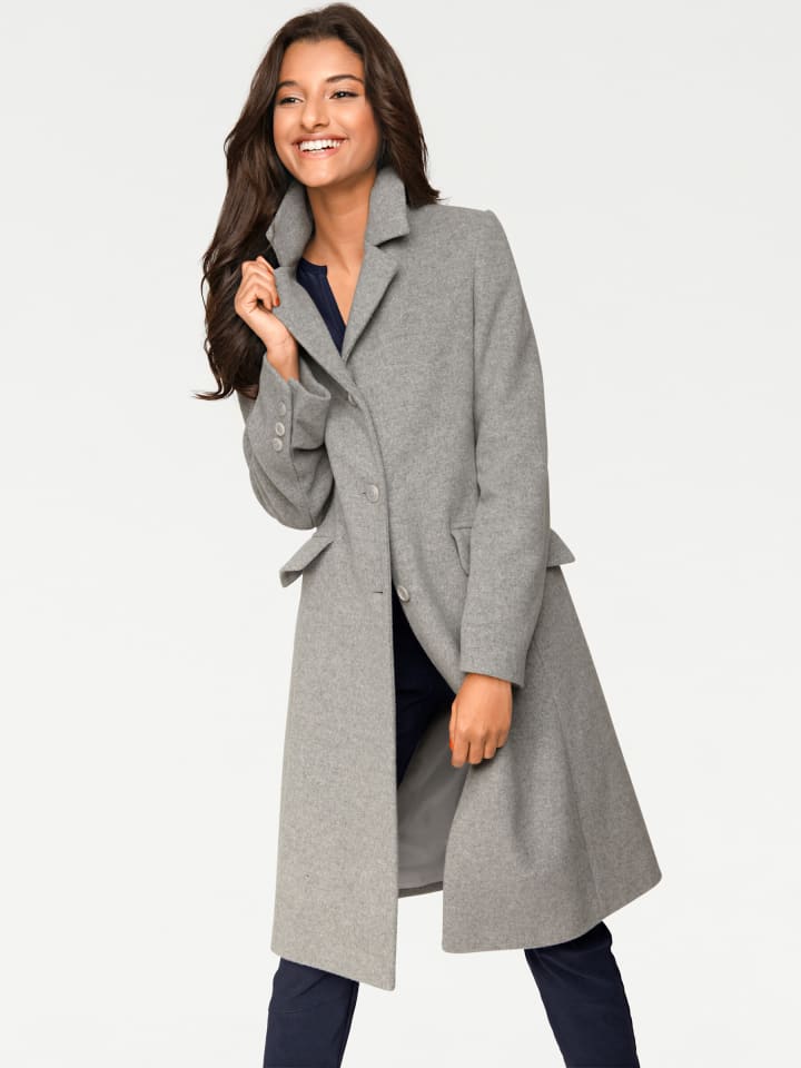 Короткое пальто. Актуальный стиль с элегантными отложными лацканами, модными подплечниками и карманами с клапанами. Облегающий крой с застежкой на пуговицы. Из мягкой, теплой зимней ткани.