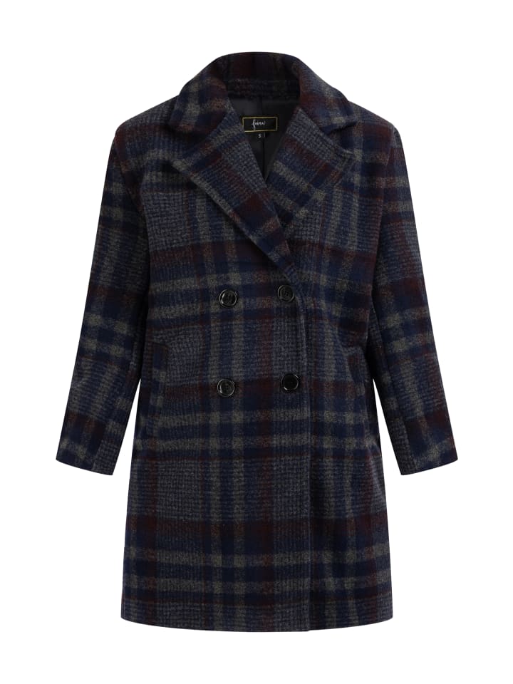 Классическое двубортное пальто от Faina элегантно подчеркнет ваш стиль благодаря прямому крою блейзера. Мягкая шерстяная ткань дополнена аристократичным клетчатым узором. Это пальто средней длины станет особенно стильным дополнением в межсезонье.
