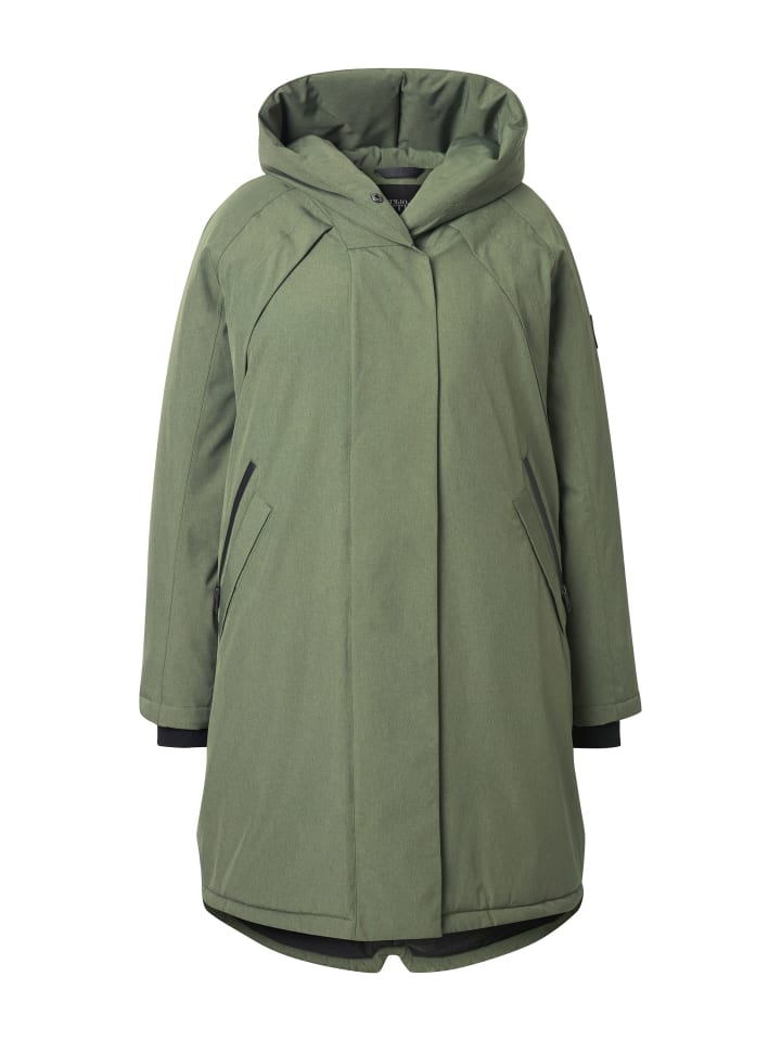 Функциональное пальто А-силуэта с мембраной: водонепроницаемое (10 000 мм водяного столба), ветронепроницаемое, дышащее. Основные швы дополнительно проварены. Капюшон, потайная двухсторонняя молния, два кармана с клапанами, два кармана на водонепроницаемых молниях. Длинные рукава с ветрозащитными манжетами - защита от холода и сквозняков. Полностью утепленная подкладка с внутренним карманом.