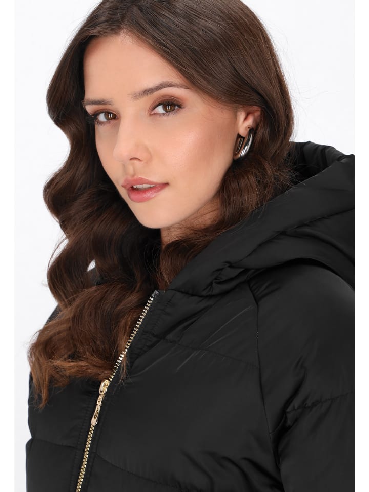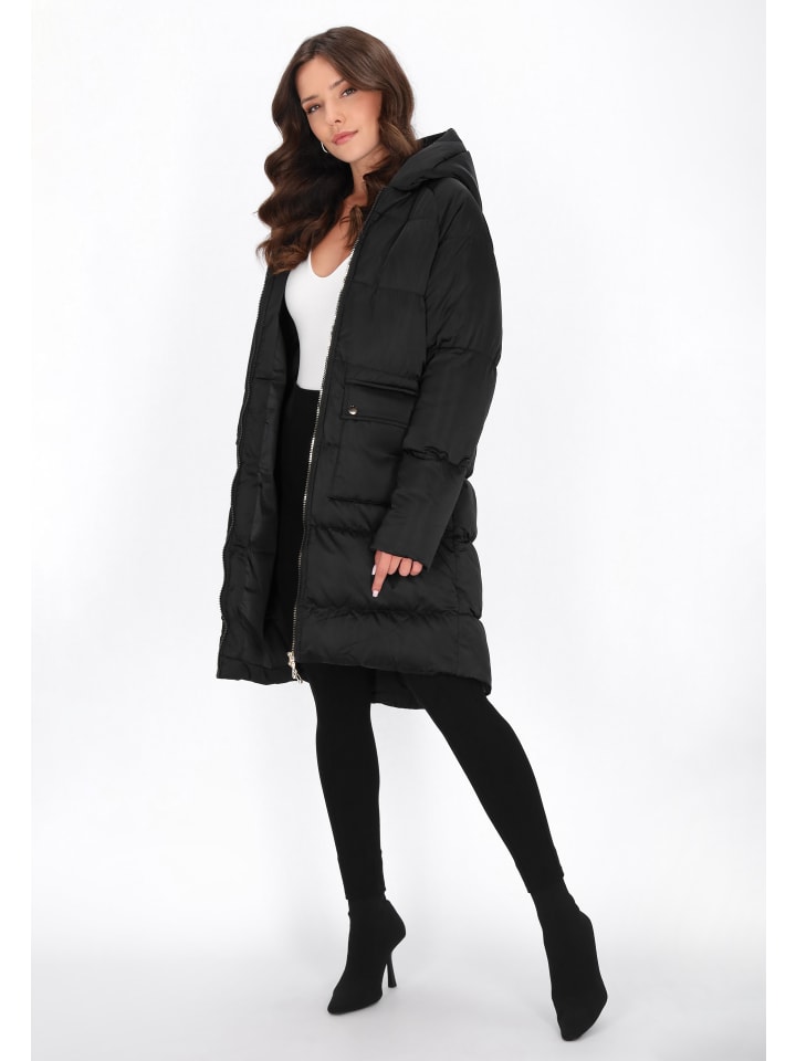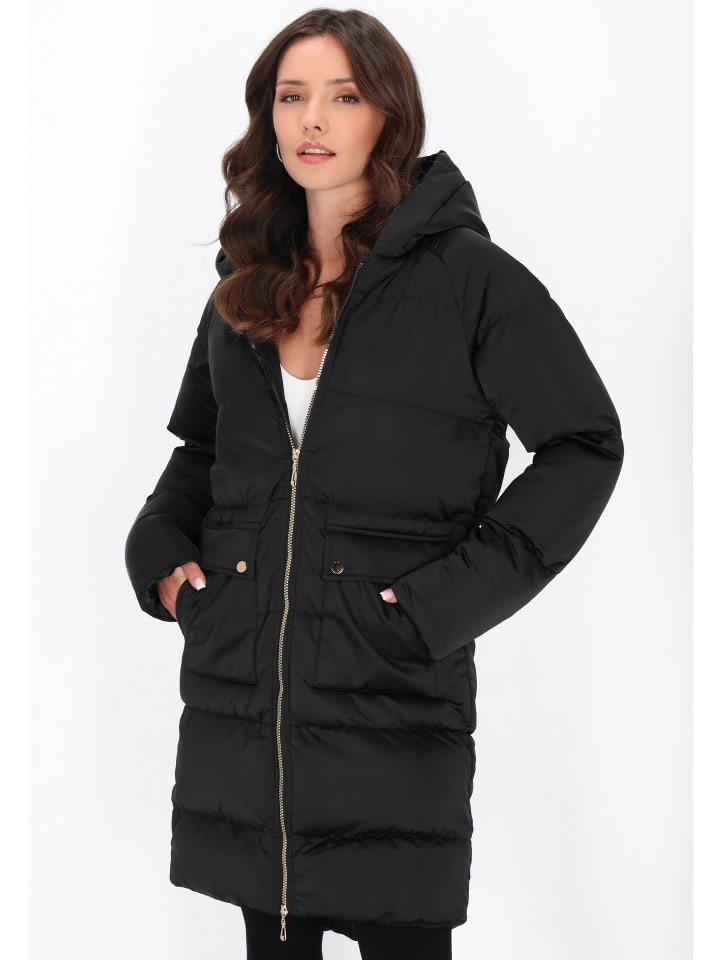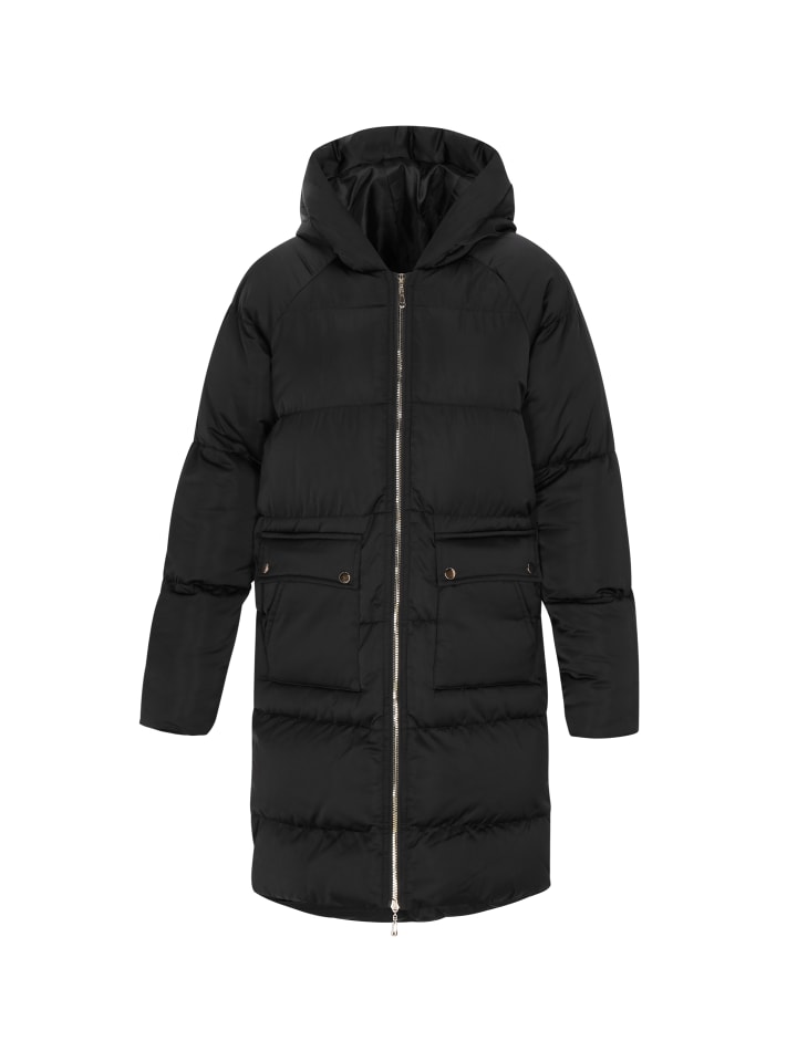 - Пальто прямого кроя с капюшоном и длинными рукавами