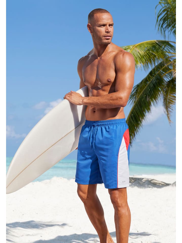 Плавающие шорты Venice Beach с контрастными вставками. Эластичный пояс на шнурке с видимым шнурком. Боковые карманы. Сетчатые трусы с внутренним карманом. Прямой крой. Мягкая микрофибра с переработанным полиэстером.
