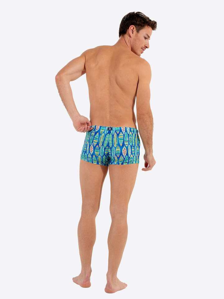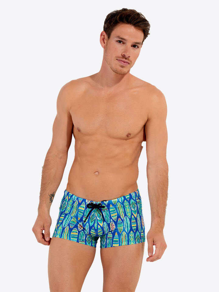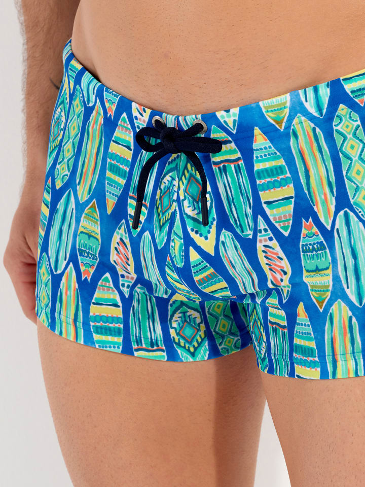 Элегантные и современные плавки MARBELLA имеют облегающий крой, который уменьшает натирание и обеспечивает превосходную свободу движений. Мягкая пенная подкладка в области паха и пояс на шнурке обеспечивают максимальный комфорт в любых ситуациях. Эти мужские плавки изготовлены из высококачественной микрофибры. Этот материал устойчив к воздействию хлора и соленой воды, не мнется и сохраняет интенсивность цвета. Идеальное решение для того, чтобы насладиться летом и чаще плавать в море или бассейне. Плавки идеально подходят для любой мужской фигуры и подчеркивают ваши достоинства. Плавки MARBELLA, со вкусом разработанные нашими дизайнерами, украшены зелеными и желтыми мотивами досок для серфинга на синем фоне в стиле тай-дай. Этот летний красочный принт делает его элегантным и стильным купальником для всех мужчин, которые ищут комфорт и оригинальность.