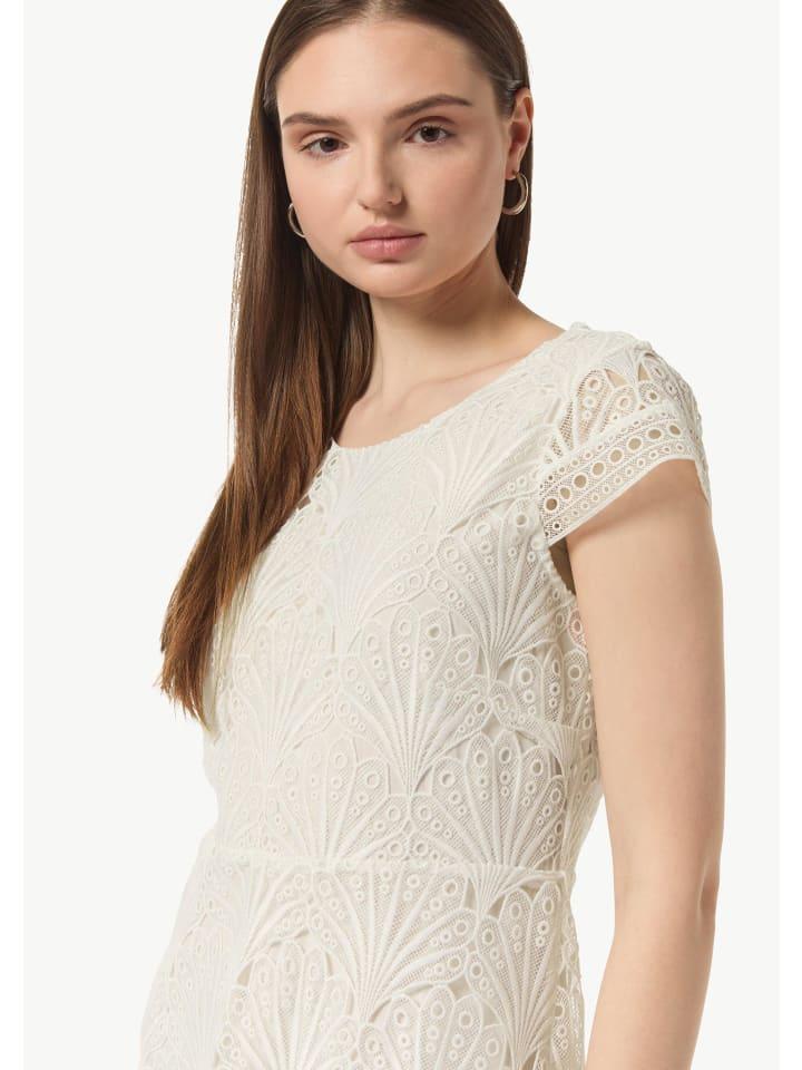 Высший класс: это элегантное кружевное платье с круглым вырезом и короткими рукавами впечатляет своим женственным силуэтом. Атласная подкладка обеспечивает комфорт, а потайная молния гарантирует безупречный вид. Это миди-платье прямого кроя станет вашим универсальным и модным нарядом как для неформального пятничного вечера, так и для летней вечеринки.