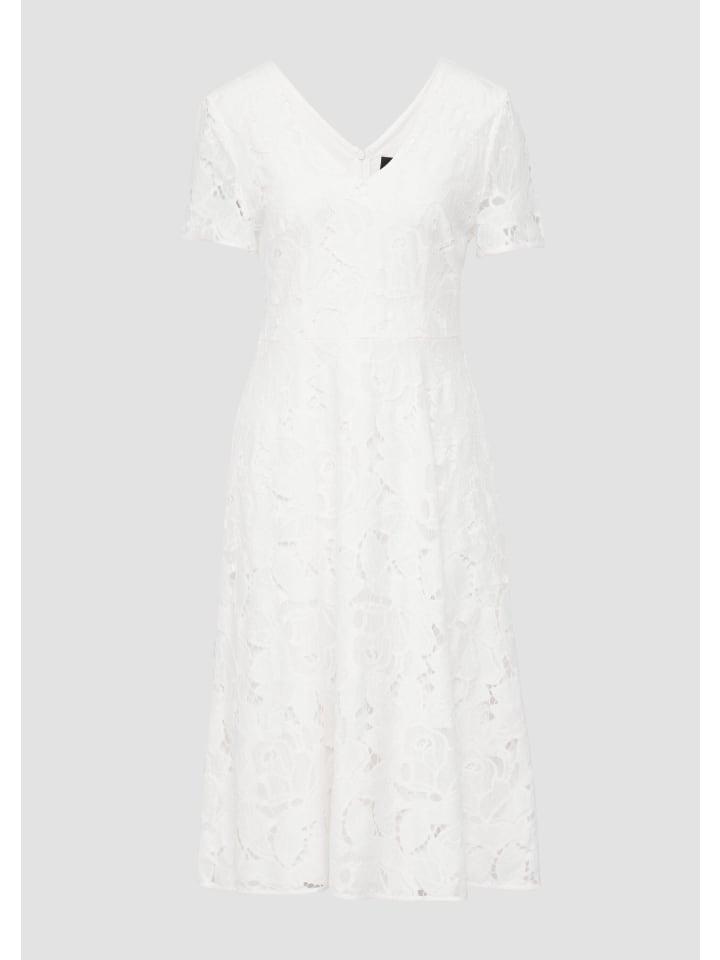 Вневременная элегантность и женственная утонченность: это приталенное платье миди из высококачественного кружева очаровывает цветочным узором и V-образным вырезом. Расклешенный подол и плотная трикотажная подкладка гарантируют идеальный комфорт. Универсальный спутник для стильного образа - от деловых встреч до свиданий.