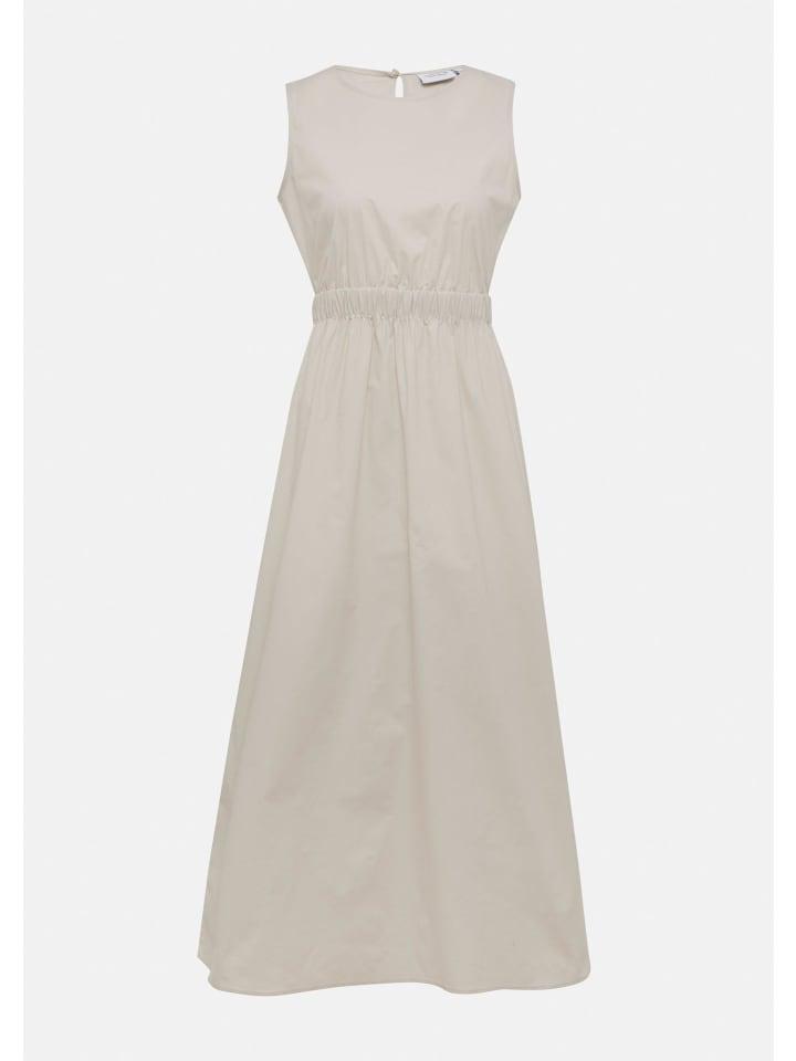 Откройте для себя летнюю элегантность в нашем длинном платье из поплина. Вырез добавляет современный штрих к модели без рукавов. Круглый вырез и приталенный, расклешенный силуэт подчеркивают вашу фигуру. Платье изготовлено из чистого хлопка, обеспечивает воздушный комфорт. Эластичный пояс обеспечивает удобную посадку. Сочетайте его с сандалиями для создания элегантного офисного образа или с каблуками для гламурного вечернего образа.