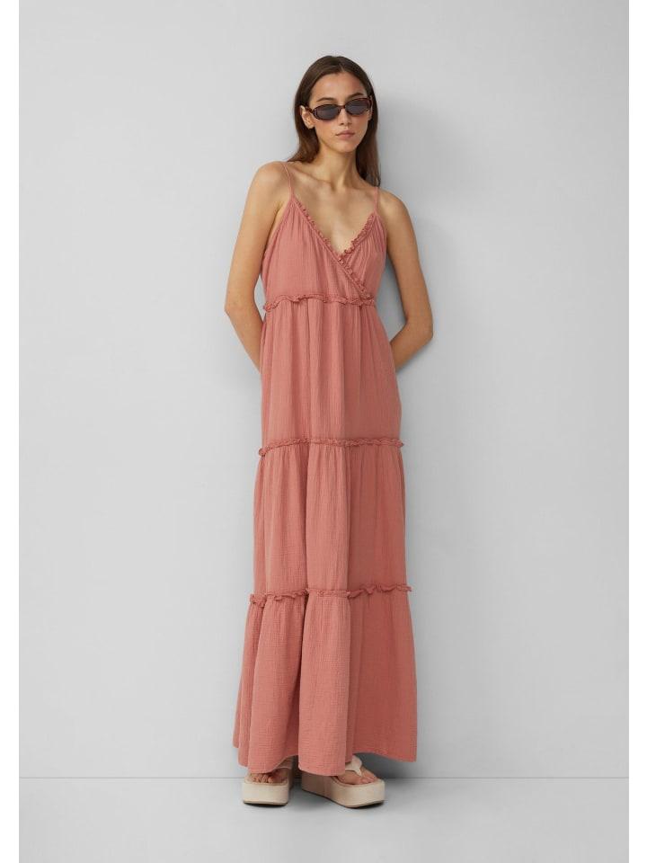 Ваш новый фаворит лета: длинное муслиновое платье с V-образным вырезом и оборками. Идеально подходит для расслабленных дней и прохладных вечеров. Легкое, воздушное и женственное - вам понравится! Изготовлено из хлопка, прямой крой для максимального комфорта.