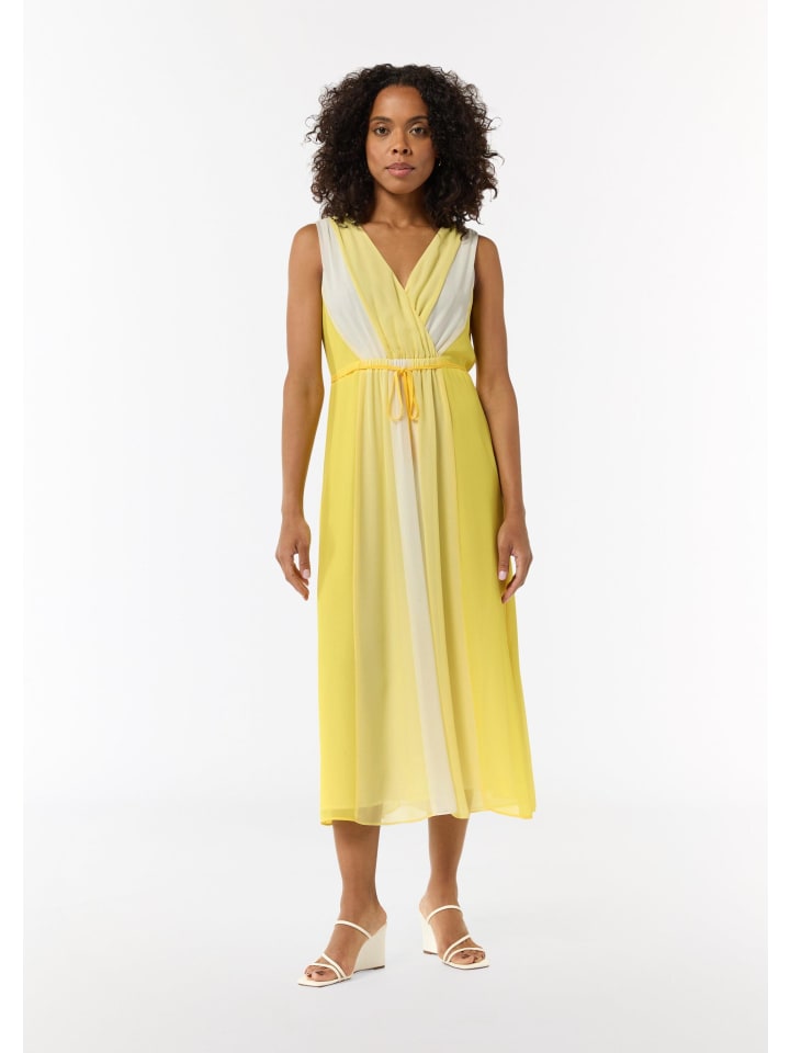 Воздушное, легкое и женственное: это шифоновое платье с эластичной талией и поясом-завязкой подчеркнет вашу фигуру. V-образный вырез и расклешенный крой создадут элегантный образ. Вы будете очарованы этим платьем на кнопках на ужине или летнем мероприятии - оно притягивает взгляды, сочетая стиль и комфорт.