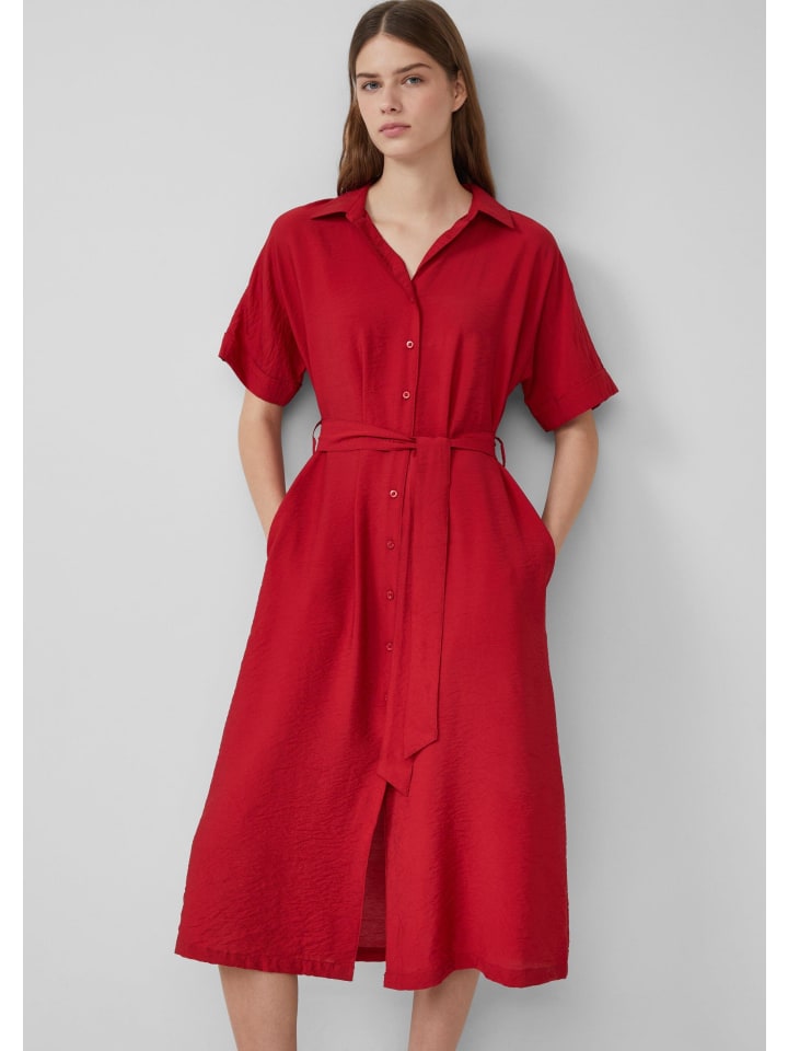 Непринужденный повседневный стиль: это женственное платье-рубашка миди впечатляет струящейся вискозной тканью, практичными боковыми карманами и изысканными сборками. Завязывающийся пояс подчеркивает ваш силуэт - идеально для расслабленных летних дней.