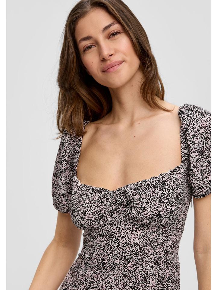 Повседневное платье миди с открытыми плечами и рукавами-буфами. Сплошной принт и сборка на спине придают вам женственный вид. Идеально подходит для расслабленных дней и прохладных летних вечеров. Ваш новый фаворит на все случаи жизни!