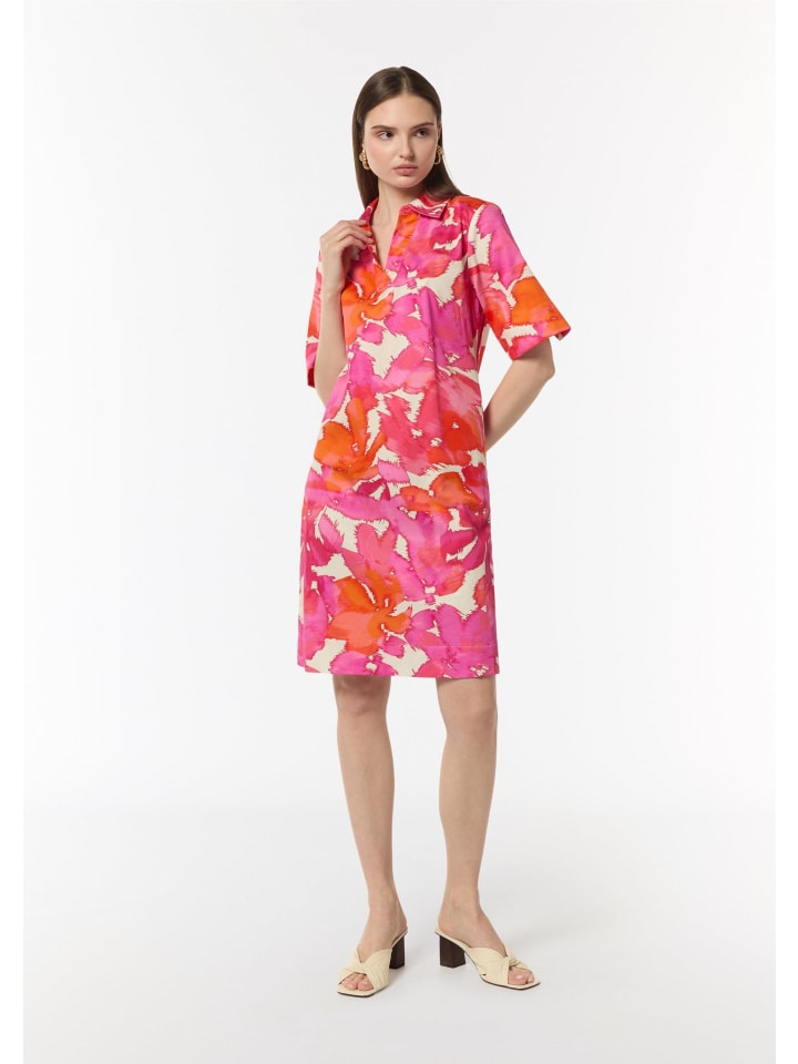 Легкий хлопок подчеркнет вашу фигуру женственным шармом. Это короткое платье с рубашечным воротником и модным принтом по всей поверхности - настоящая приманка для глаз. Приталенный крой подчеркнет вашу фигуру и добавит нотку непринужденной элегантности вашему летнему образу. Дополните его сандалиями для создания непринужденного и элегантного образа или туфлями-лодочками для нотки гламура.