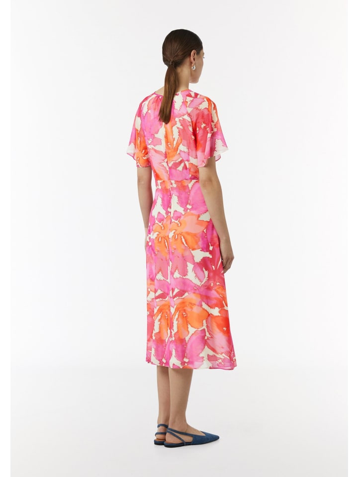 Женственность и непринужденность: это платье миди с принтом по всей поверхности создаст стильный образ. Струящаяся ткань подчеркивает фигуру, а потайная молния обеспечивает комфорт. Дополните его сандалиями для создания повседневного и элегантного образа или наденьте туфли-лодочки для праздничного случая.
