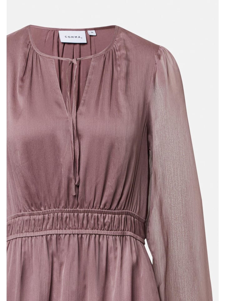 Женственное шифоновое платье с приталенным силуэтом: V-образный вырез с элегантной шифоновой отделкой и длинные рукава с эластичными манжетами добавляют стильные акценты. Текстурированная поверхность и кокетка спереди придают платью современный вид, а удобный эластичный пояс гарантирует идеальную посадку.