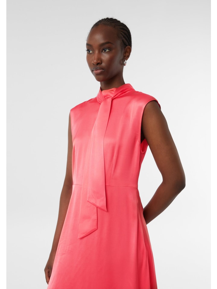 Элегантность атласа в длине миди: это расклешенное платье впечатляет высококачественным атласным лифом. Высокий вырез с разрезом и пуговицей создаст изысканный образ. Безрукавка и изысканный завязочный элемент добавят женственности. Идеально подходит для стильных женщин, ценящих вневременную элегантность. Сочетайте его с туфлями-лодочками для эффектного выхода или с сандалиями на плоской подошве для создания непринужденно-шикарного дневного образа.
