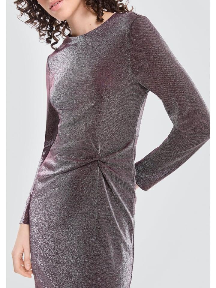 Это блестящее платье заставит вас сиять - будь то на вечеринке или в непринужденной обстановке с любимыми. Трикотаж интерлок с металлическим эффектом создает стильный образ, а непринужденный узел добавляет особый шарм классическому крою. Благодаря эластичному материалу платье удобное и не сковывает движений.