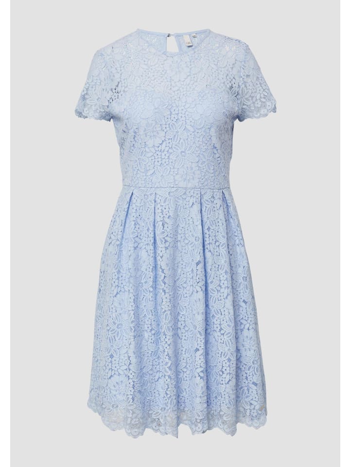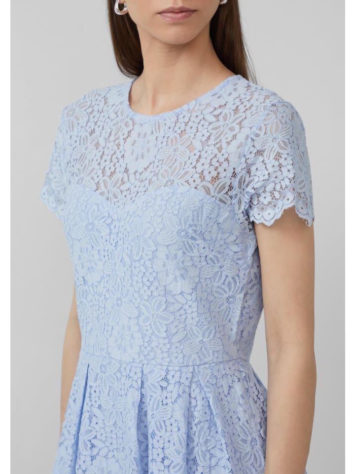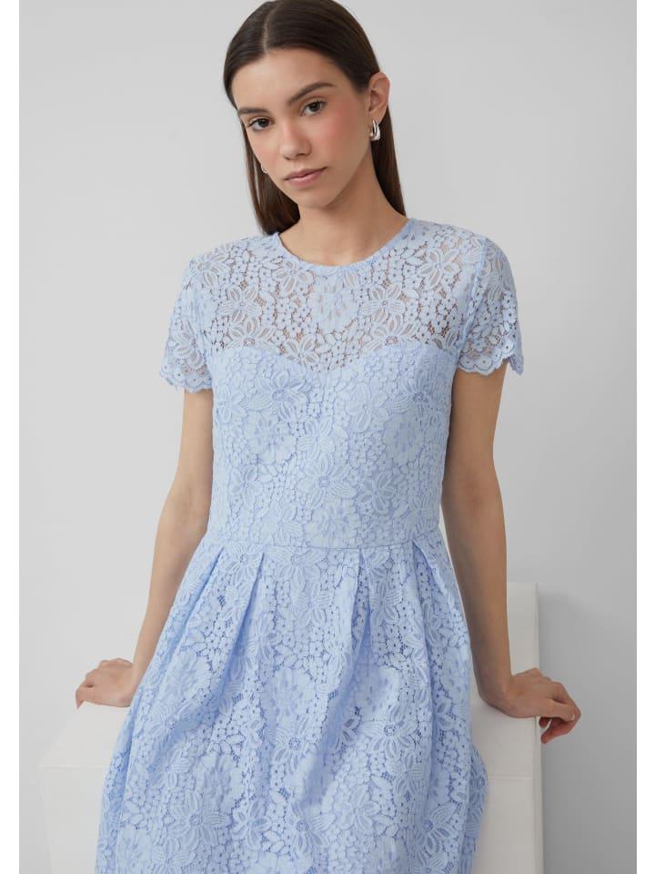 Женственное и легкое: это приталенное кружевное платье станет вашим идеальным спутником для особых случаев. Благодаря коротким рукавам и круглому вырезу оно отлично впишется в повседневную жизнь. Как насчет свидания?
