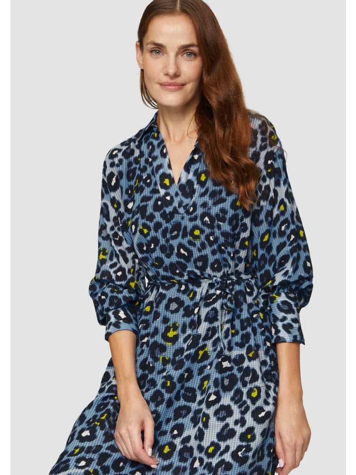 Это воздушное и легкое платье-рубашка из текстурированной вискозы создает женственный образ. Уникальный рисунок, классический рубашечный воротник и практичные боковые карманы сделают его стильным спутником для расслабленных дней.