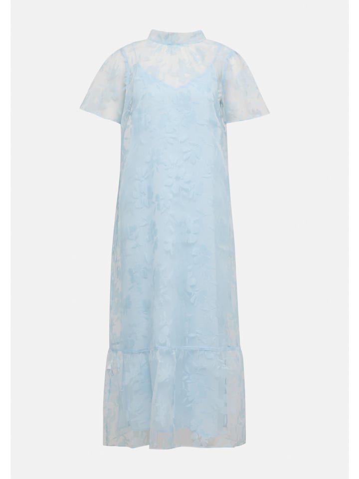 Воздушное платье из органзы с изысканным акцентом: это длинное платье с короткими рукавами и воротником-стойкой очаровывает прозрачной тканью. Съемная вставка обеспечивает гибкие возможности для создания образа. Застежка-бант добавит игривости. Создайте летний, но элегантный образ с этим изделием - идеальный вариант для особых случаев или гламурных вечеров.