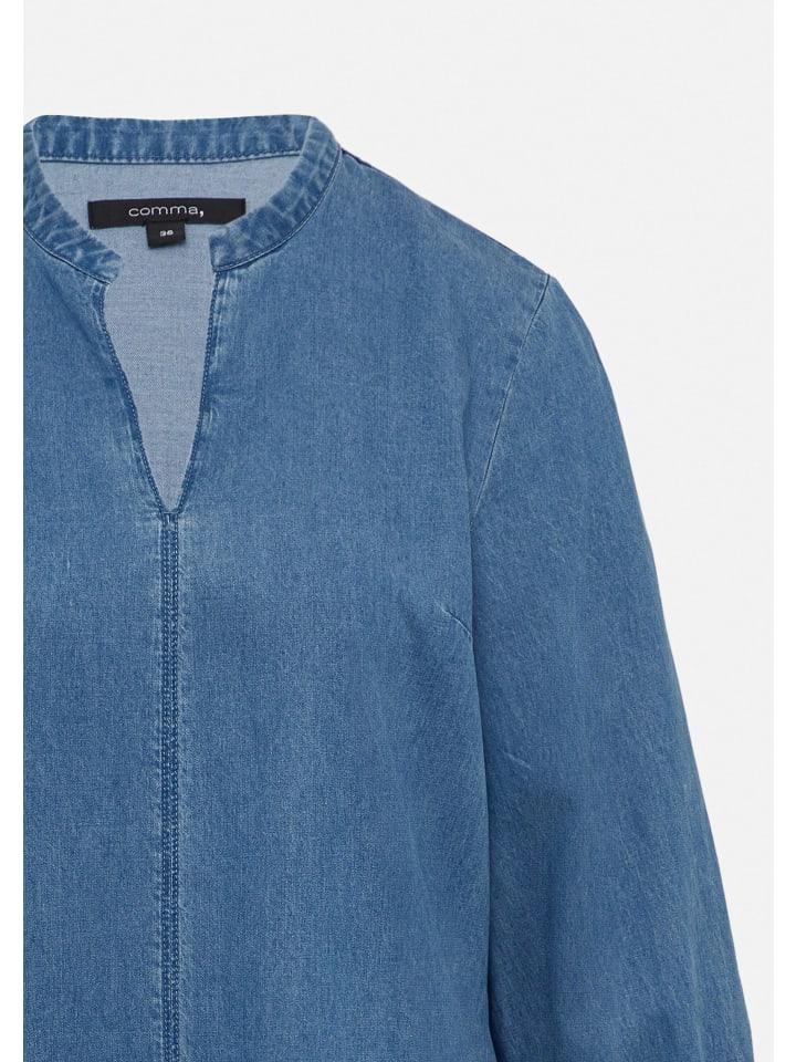 Откройте для себя городскую элегантность в нашем джинсовом платье миди из струящегося лиоцелла. Туникообразный вырез и рукава 3/4 с эластичными манжетами создают женственный силуэт. Благодаря легкому эластичному дениму вы будете наслаждаться исключительным комфортом. Тонкий оттенок и практичные боковые карманы делают это платье универсальным и идеальным вариантом для создания повседневного и элегантного образа в офисе или для прогулок по городу.