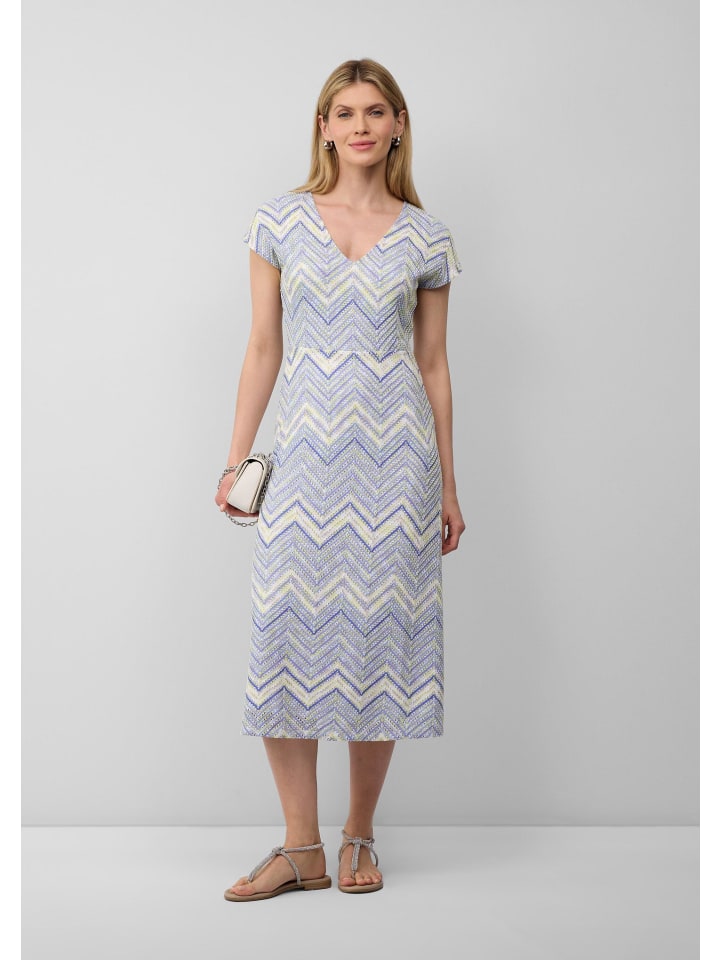 Элегантность и комфорт: это приталенное платье миди из трикотажного джерси идеально облегает фигуру. V-образный вырез и расклешенный низ добавляют женственности. Вы будете излучать уверенность на деловых встречах и вечерних мероприятиях. Универсальный спутник, который подчеркнет ваш индивидуальный стиль.