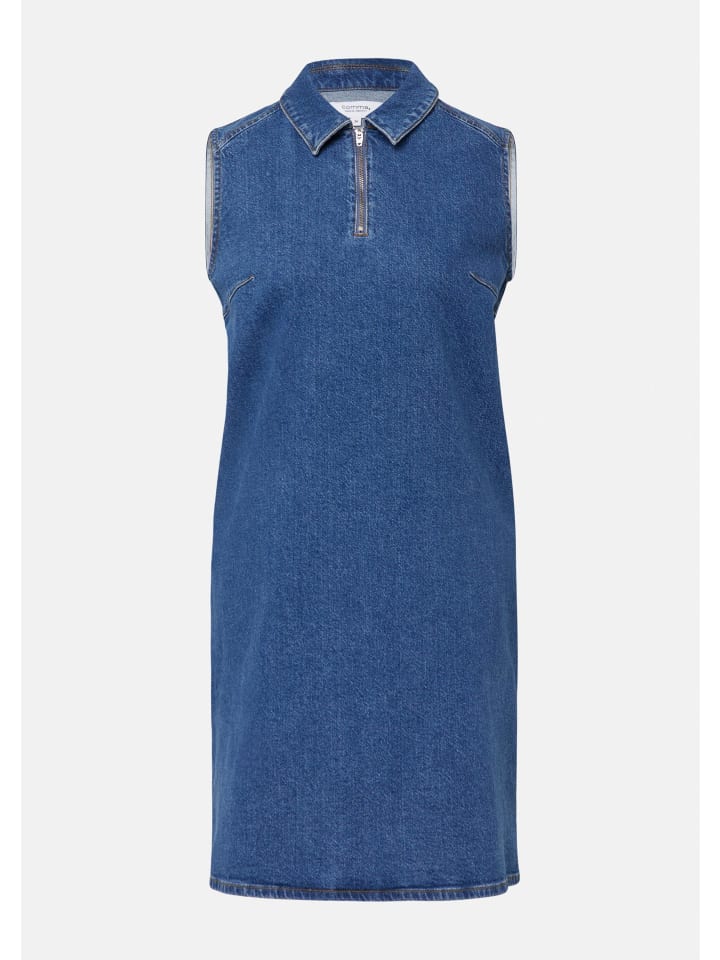 Городской джинсовый шик: это короткое платье из плотного денима сочетает в себе непринужденный уличный стиль и женственную элегантность. Классический рубашечный воротник добавляет изысканности, а молния позволяет легко надевать и снимать платье. Благодаря эластичному материалу и короткой длине оно обеспечивает оптимальную свободу движений. Легкая потертость идеально дополняет образ - идеально подходит для стильного повседневного образа или непринужденного ужина.