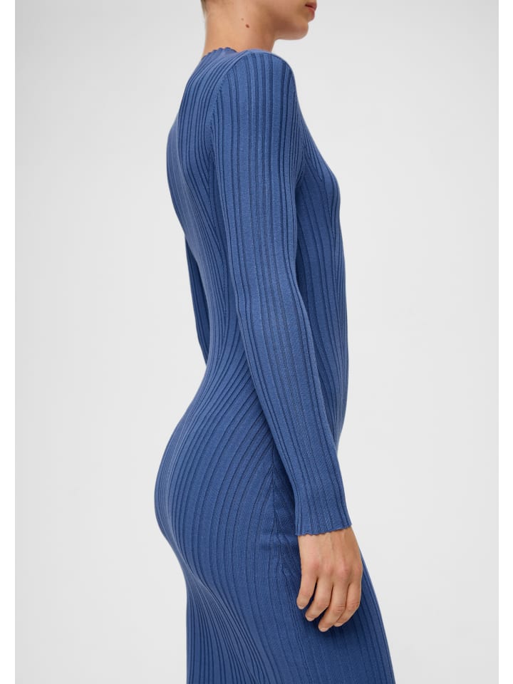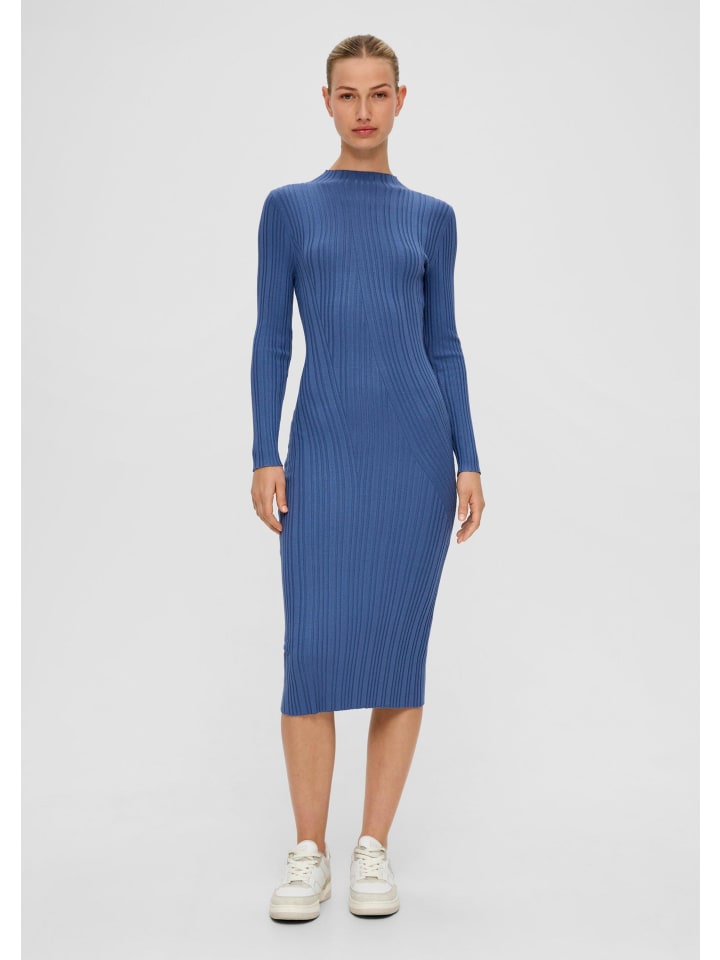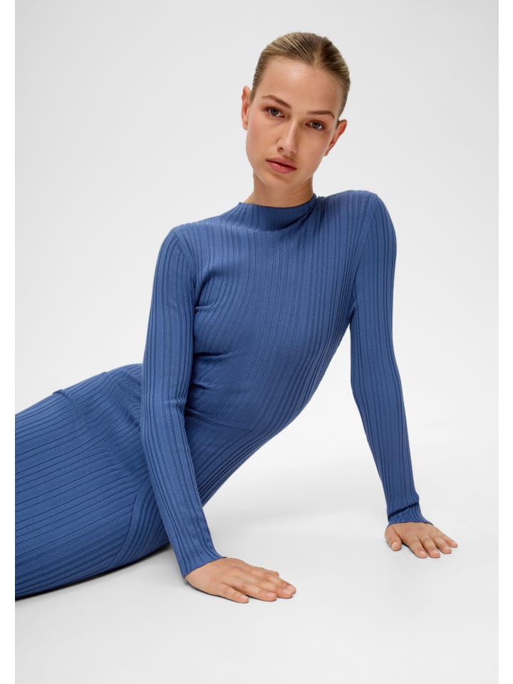 Гарантированные моменты комфорта: это мягкое платье миди из тонкого трикотажа в рубчик нежно облегает тело. Благодаря элегантному воротнику-стойке и облегающему крою, это эластичное вискозное платье будет стильно сопровождать вас в течение всего дня.