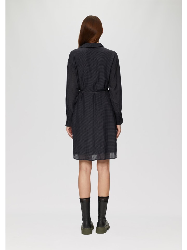 Это воздушное и легкое платье-рубашка из текстурированной вискозы создает женственный образ. Уникальный рисунок, классический рубашечный воротник и практичные боковые карманы сделают его стильным спутником для расслабленных дней.