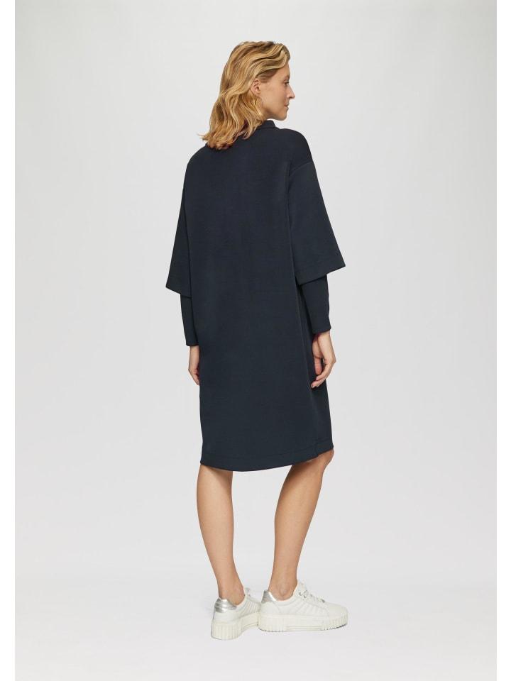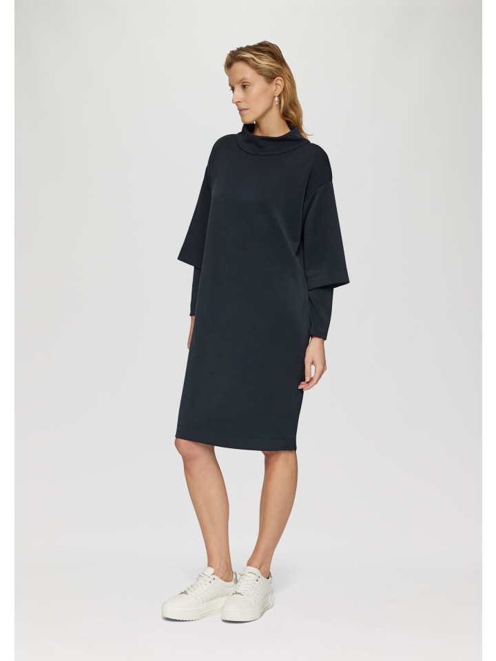 Повседневно-элегантный стиль и современный комфорт: это платье средней длины с кулиской впечатляет изысканными многослойными деталями и эффектным воротником-стойкой. Свободный свободный крой и спущенные плечи создают уверенный силуэт. Боковые разрезы добавляют стильные акценты - идеально для вашего повседневно-элегантного образа.