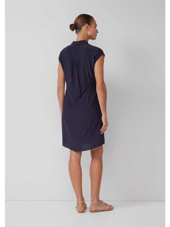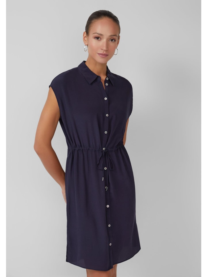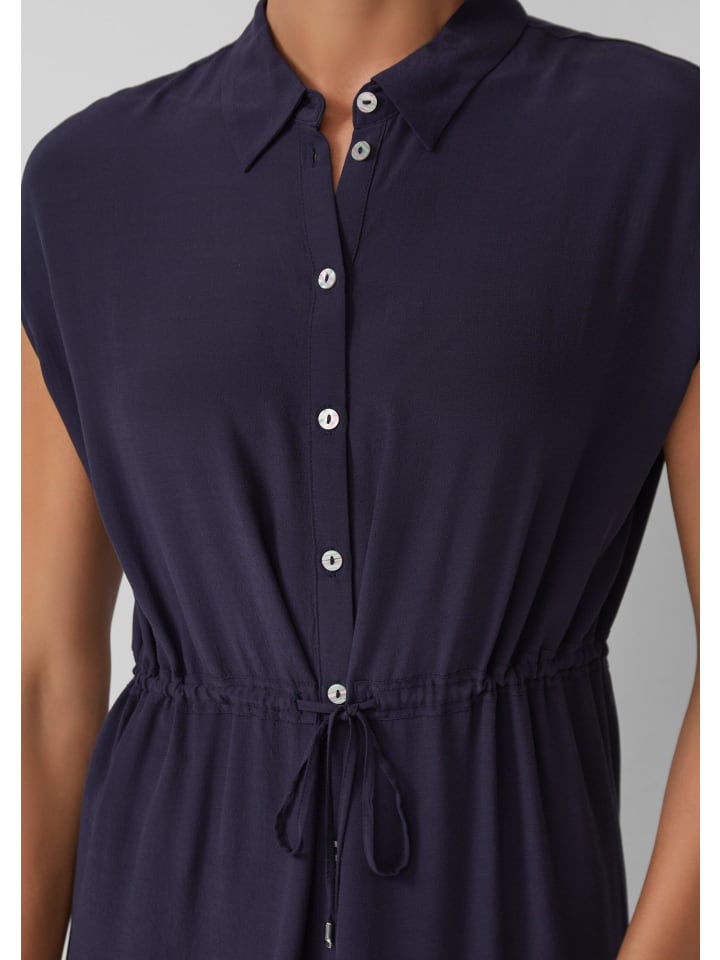 Элегантность и универсальность: это платье-рубашка без рукавов из вискозы впечатляет спущенными плечами и изысканной кулиской. Рубашечное платье-воротник придаст вам уверенный вид, а короткая длина добавит современный штрих. Идеально подходит для создания уверенного образа в офисе или на неформальном ужине.