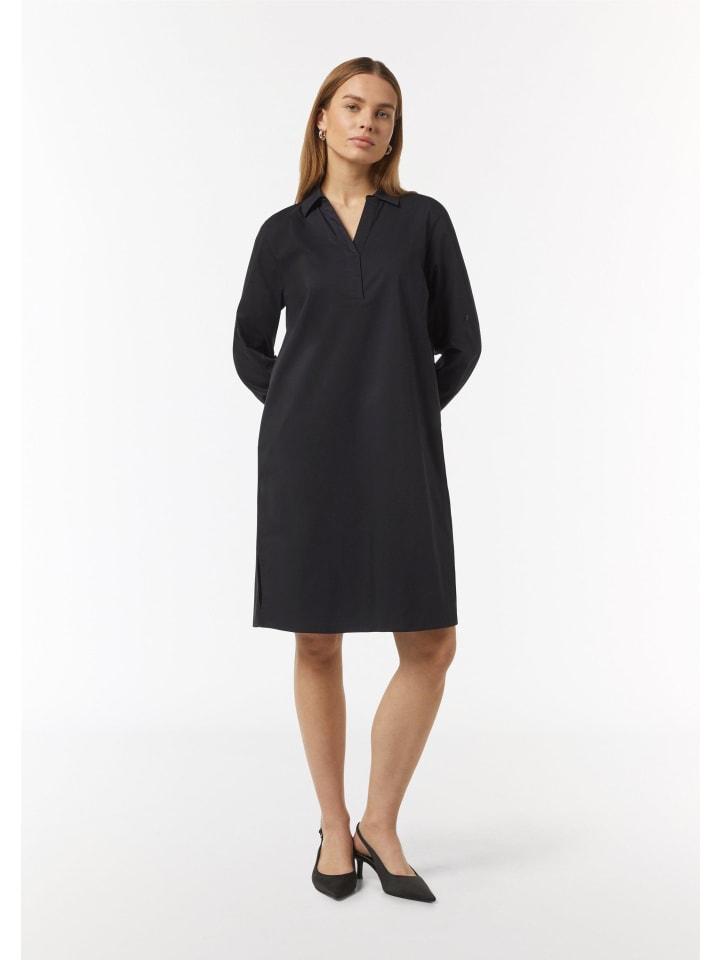 Это деловое платье сочетает в себе профессионализм и комфорт. Отложной воротник и рукава три четверти с отворотами создают уверенный образ. Длина мини и потайные карманы создают привлекательный силуэт. Благодаря смеси хлопка, полиамида и эластана вы сможете наслаждаться свободой движений и сохранять форму. Сочетайте его с туфлями-лодочками для создания элегантного образа или с кроссовками для непринужденного делового повседневного стиля.