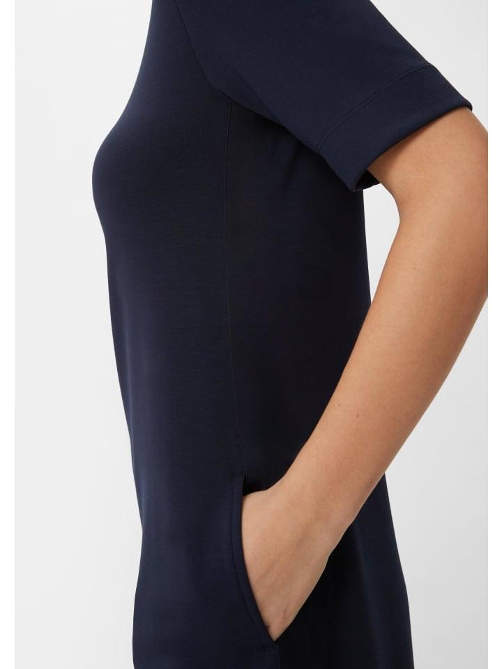 Расслабьтесь в этом повседневном платье из мягкой модальной смеси. Чистый крой и классический крой создают привлекательный силуэт. Короткие рукава и свободная длина обеспечивают комфортную прохладу для повседневных случаев. Практичные боковые карманы и круглый вырез дополняют эту удобную модель - ваш новый фаворит на лето.