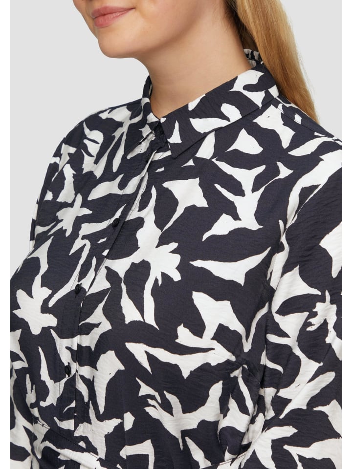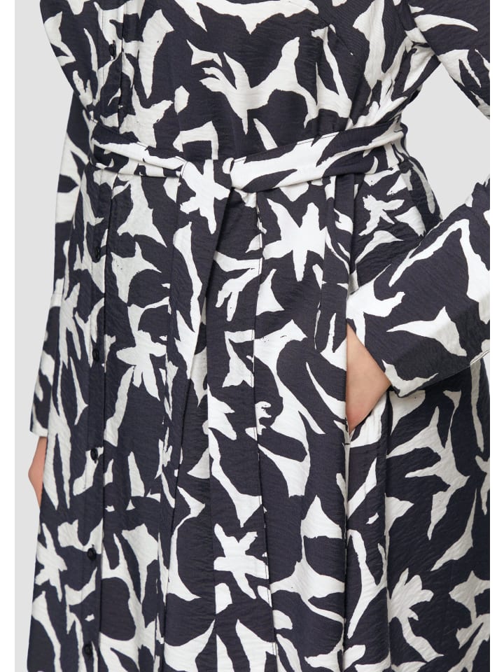 Это струящееся платье миди с принтом по всей поверхности сочетает в себе непринужденный стиль и женственную элегантность. Классический рубашечный воротник, практичные боковые карманы и удобный классический крой делают его идеальным спутником для расслабленных дней.