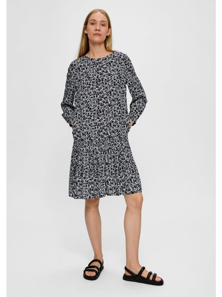 Окунитесь в непреходящий шик с нашим платьем миди из 100% вискозы. Это платье свободного кроя с длинными рукавами и элегантным круглым вырезом не только вне времени, но и универсально. Носите его с кроссовками для создания непринужденного образа или с ботинками для более нарядного образа. Гладкая ткань и длина миди делают его идеальным для любого сезона. Собираетесь ли вы на бранч или проводите день в офисе, это платье будет стильным дополнением к вам. Позвольте себе быть очарованными легкостью и элегантностью этого платья и будьте готовы чувствовать себя комфортно в любой ситуации - закажите сейчас!