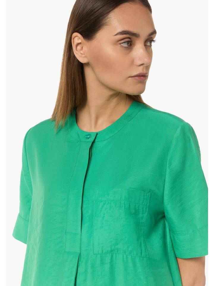 Летний шик с тканой текстурой: это мини-платье впечатляет своим классическим дизайном и расклешенным силуэтом. Благодаря легкой ткани и воротнику-стойке оно станет незаменимым элементом гардероба. Дополните его кроссовками для создания непринужденного и повседневного образа или сандалиями для создания женственного образа. Нагрудный карман и застежка на пуговицы идеально дополняют эту модную вещь.