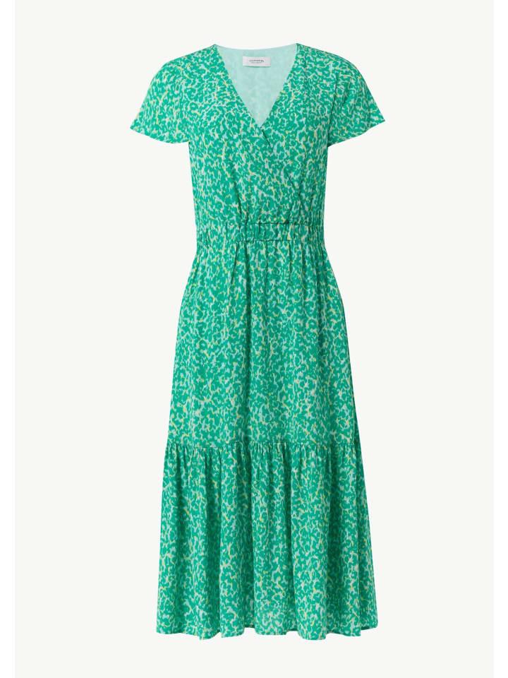 Вневременный дизайн и комфорт: это приталенное платье с верхом-запахом из струящейся вискозы выгодно подчеркивает фигуру. Короткие рукава и V-образный вырез добавляют элегантности, а эластичный пояс обеспечивает удобную посадку. Сочетайте его с кроссовками для создания повседневного образа или с туфлями-лодочками для создания женственного вечернего образа.