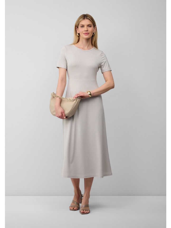 Блеск и гламур на все случаи жизни: это приталенное платье миди из мерцающей вискозы с блестящей пряжей очарует вас. Расклешенный подол и круглый вырез подчеркнут вашу фигуру. Будь то деловая встреча или вечеринка, вы будете излучать вневременную элегантность и современный шик. Ваш яркий акцент для незабываемых моментов.