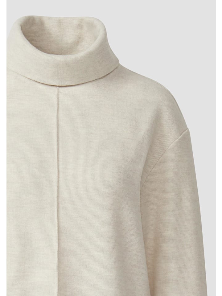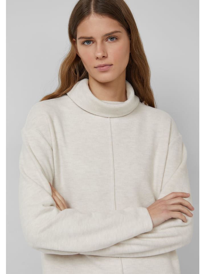 Уютное и невероятно простое! Это платье из меланжевого джерси с водолазкой и спущенным плечом идеально подходит для любого повседневного дня. Свободный крой обеспечивает свободу движений, а складки добавляют особый шарм. Идеально подходит для уютных моментов - будь то бранч с друзьями или отдых дома.
