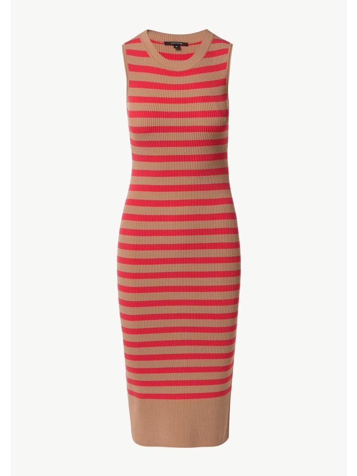 Женственное и модное: это платье из тонкого трикотажа без подкладки с полосками и отделкой в рубчик создает непринужденный приталенный образ. Эластичная ткань обеспечивает комфорт, а длина миди и вырез горловины в рубчик создают стильный образ. Это платье можно комбинировать с различными вариантами одежды, будь то на каждый день или для выхода в свет.