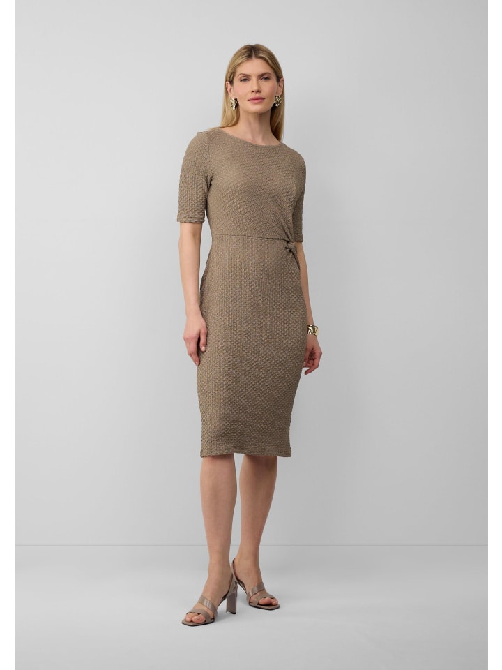 Элегантность и комфорт: это структурированное платье-футляр из трикотажного джерси с изысканным узлом станет вашим стильным спутником на любой случай. Вырез лодочкой и рукава до середины голени создают женственный силуэт. Длина миди и облегающий крой идеально подчеркнут вашу фигуру - от деловых встреч до праздничных ужинов.