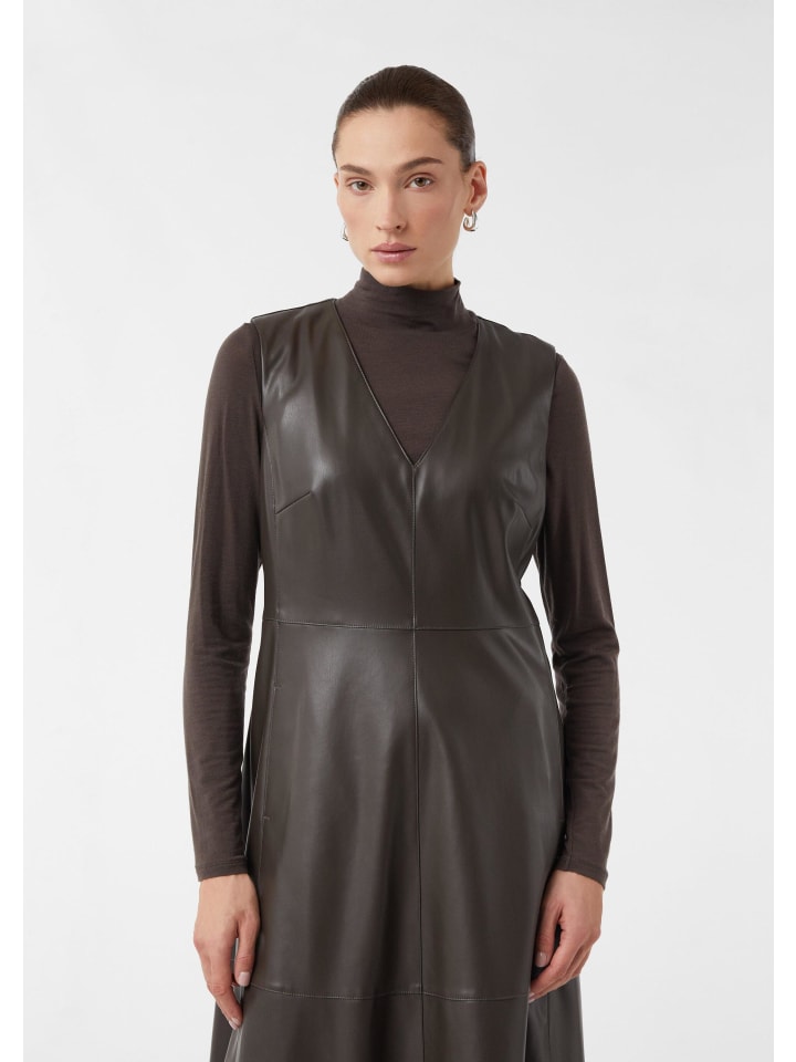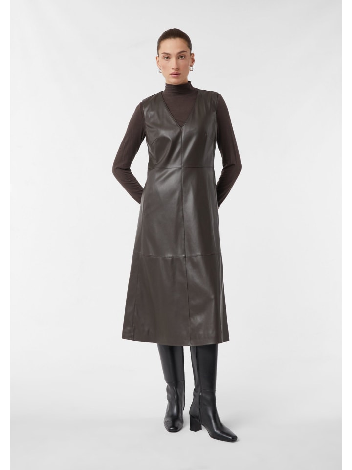 Элегантный повседневный стиль и вневременной шик: это высококачественное платье миди из кожи наппа впечатляет своим эффектным V-образным вырезом и струящимся силуэтом. Классический крой подчеркивает фигуру, а практичные боковые карманы добавляют современный штрих. Благодаря легкой подкладке и удобной молнии это универсальное платье идеально подходит как для деловых, так и для повседневных случаев.