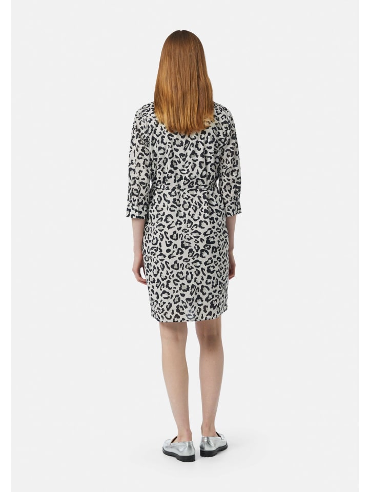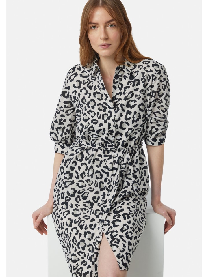 Дикий стиль встречается с элегантностью: это платье-рубашка с леопардовым принтом станет вашим новым модным акцентом. Изготовленное из высококачественного хлопка, оно выгодно подчеркивает фигуру благодаря рукавам три четверти и строгому крою. Отложной воротник и планка на пуговицах придают изделию классический вид, а завязывающийся пояс подчеркивает талию. Сочетайте его с кроссовками для создания повседневного образа или с туфлями-лодочками для создания элегантного образа.