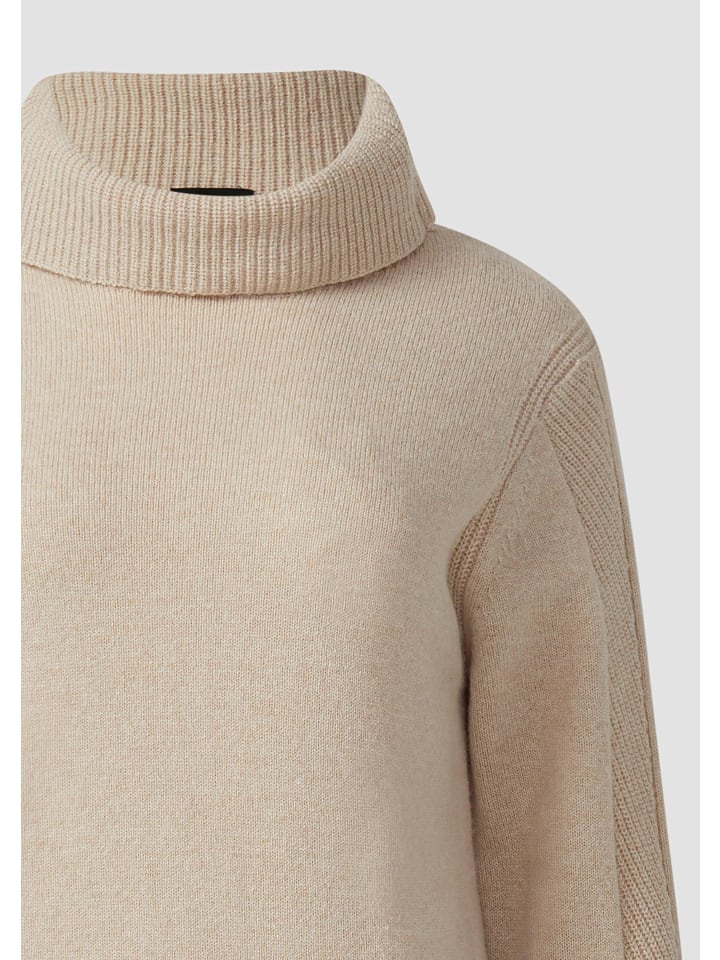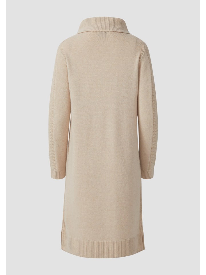 Вневременная элегантность и современная изысканность: это трикотажное платье миди из высококачественной шерстяной смеси очаровывает изящными ажурными деталями и элегантным воротником. Прямой крой и женственная длина миди делают его универсальным спутником - от деловых встреч до неформальных ужинов. Ребристая отделка по подолу добавляет стильный акцент.