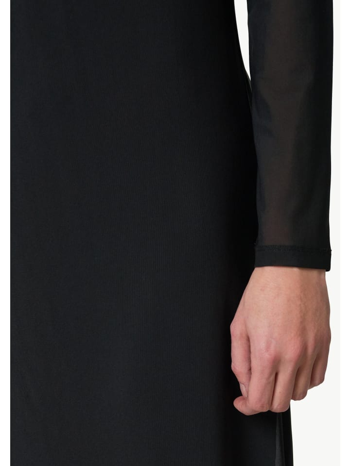 Это облегающее сетчатое платье воплощает женственную элегантность. Изысканный водопадный вырез добавляет стильный штрих, а трикотажная подкладка обеспечивает комфорт. Длина миди и длинные рукава делают его универсальным аксессуаром для самых разных случаев. Носите его с кроссовками или элегантно с туфлями-лодочками - это платье легко адаптируется к вашему индивидуальному образу.
