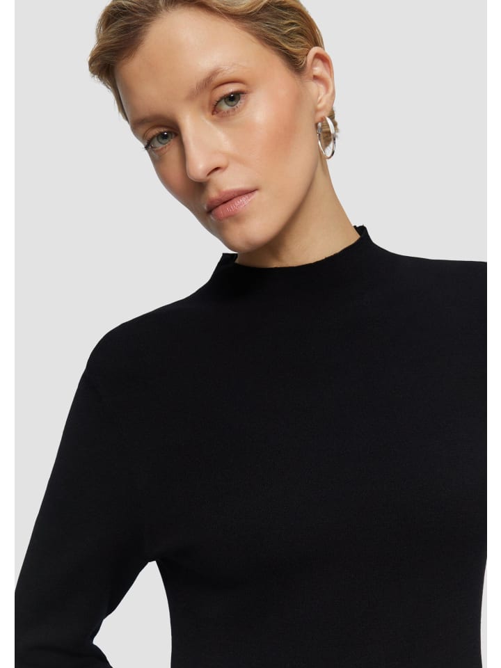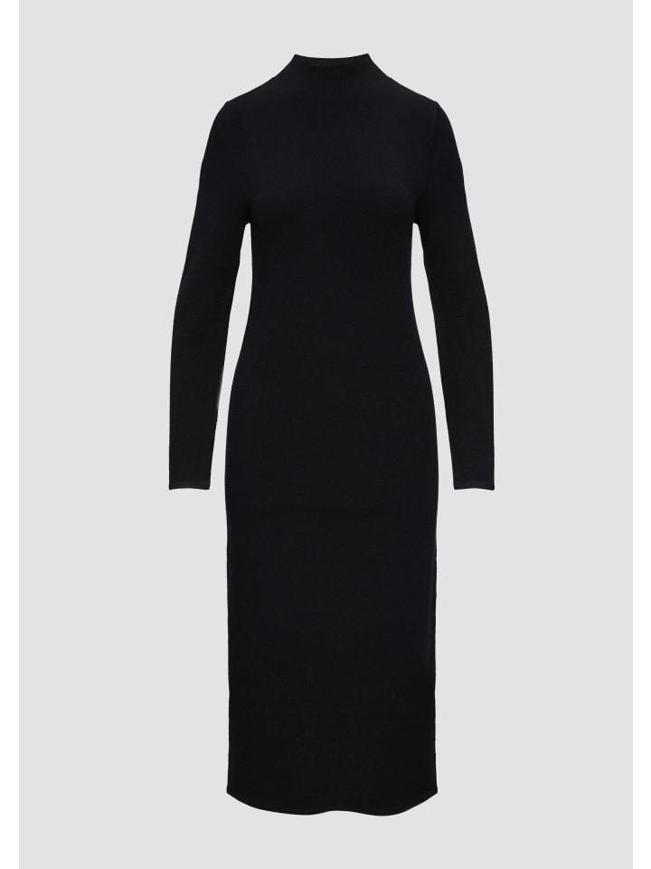 Это элегантное трикотажное платье с воротником-стойкой станет вашим идеальным спутником для расслабленных дней. Вискозная смесь обеспечивает комфорт, а облегающий крой подчеркивает фигуру. Сочетайте его с ботинками для создания осеннего образа или с кроссовками для повседневного стиля. Удлиненная длина и длинные рукава делают его универсальным - его можно носить как в офисе, так и на отдыхе.
