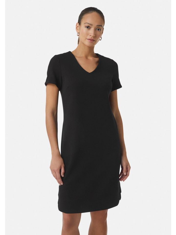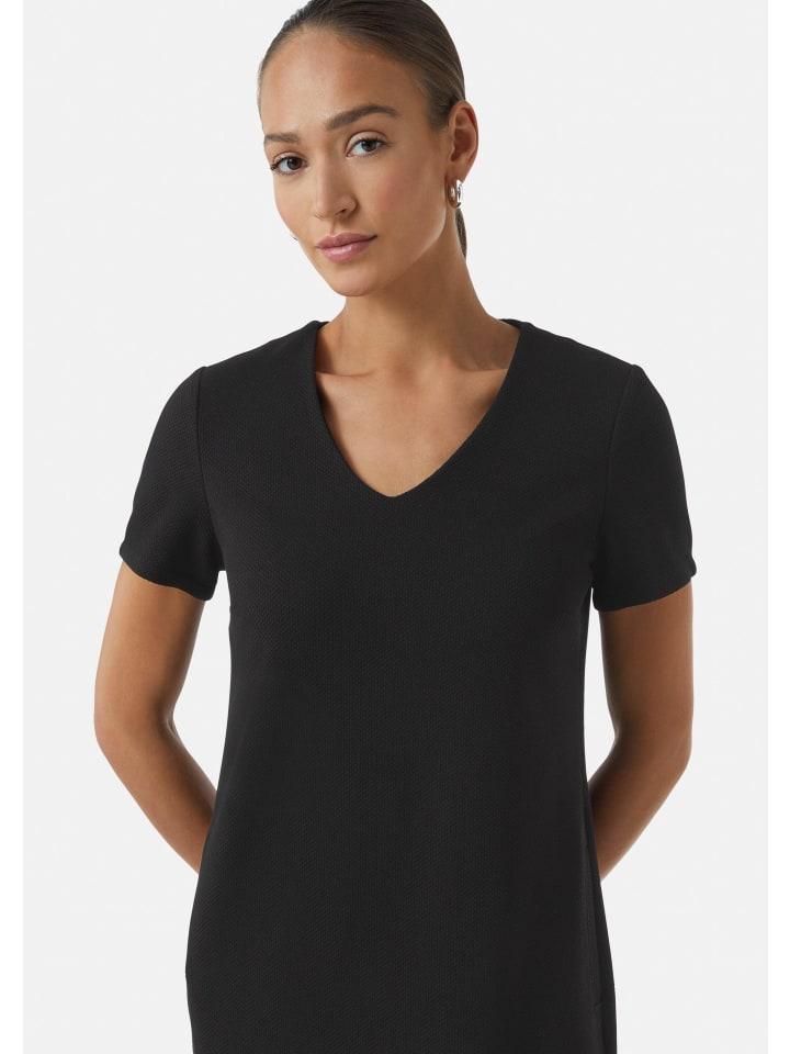 Изысканность без усилий: это короткое платье из пике сочетает в себе комфорт и стиль. V-образный вырез подчеркивает зону декольте, а свободный крой обеспечивает свободу движений. Практичные прорезные карманы и разрезы по бокам добавляют современный штрих. Благодаря высококачественному эластичному материалу оно идеально подходит как для повседневных, так и для деловых образов. Сочетайте его с кроссовками или туфлями-лодочками для создания универсальных образов.