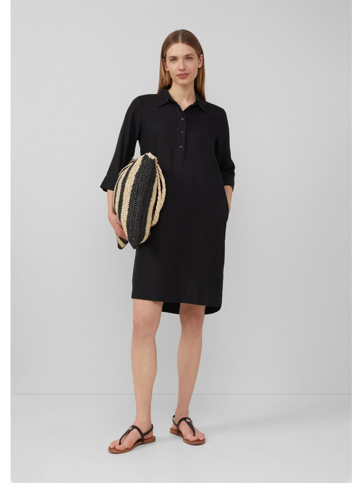 Это воздушное платье-рубашка из смесовой льняной ткани - ваш новый фаворит в повседневном стиле. Рукава три четверти, женственный рубашечный воротник и практичные боковые карманы обеспечат вам комфорт в теплые дни. Короткая длина и классический крой подчеркнут вашу фигуру.
