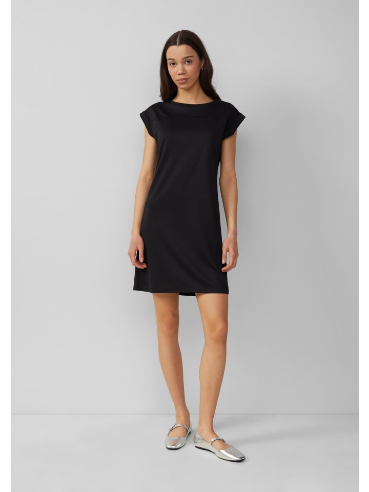Готовы к стильному выходу в свет? Это короткое платье из эластичного трикотажа интерлок - ваш новый фаворит! Спущенное плечо и приталенная манжета идеально подойдут для вашего непринужденного образа. Женственное, удобное и универсальное - превратите любую ситуацию в подиум!