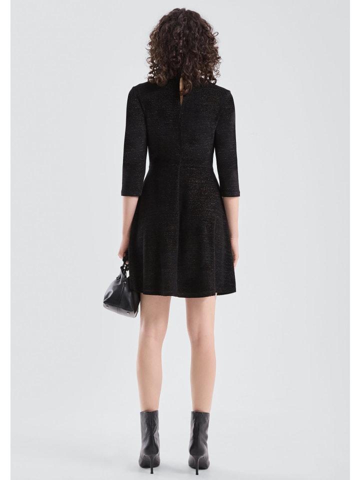 Ваш новый спутник для вечеринки: это мерцающее бархатное платье с рукавами 3/4 сочетает в себе элегантность и комфорт. Эластичная ткань и женственный крой с водолазкой идеально подчеркнут вашу фигуру. Гламурный образ для особых моментов.