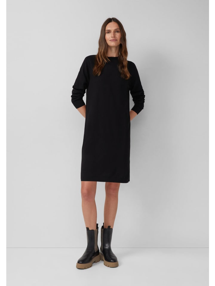 Это уютное короткое платье из тонкого трикотажа порадует вас приятным мягким материалом и согревающими свойствами. Эластичный классический крой и фирменные ребристые детали на длинных рукавах сочетают комфорт с непринужденным, повседневным стилем - идеально для отдыха.
