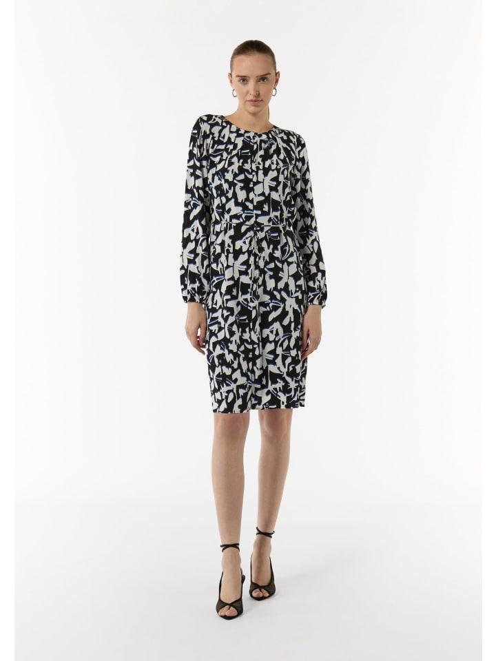 Добавьте женственности вашему летнему образу с этим узорчатым платьем миди. Струящаяся вискозная ткань красиво драпируется, а плиссированный вырез и завязывающийся пояс придают элегантный вид. Благодаря свободному крою и застежкам на пуговицы платье можно носить по-разному - как с босоножками для дня, так и с туфлями-лодочками для вечера.